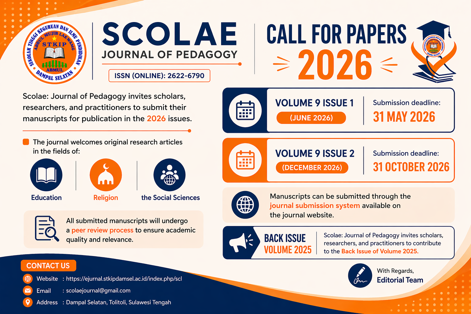 Scolae: Journal of Pedagogy invites scholars, researchers, and practitioners to submit their manuscripts for publication in the 2026 issues.